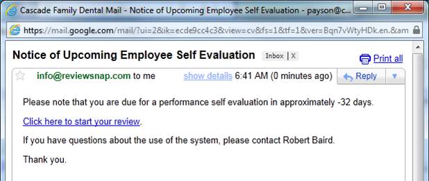 2. A second email will notify you to login and perform a “Self- Appraisal”