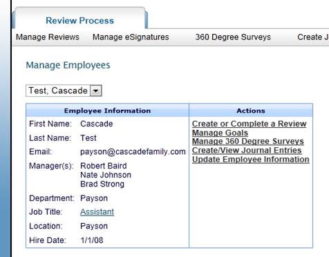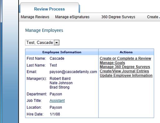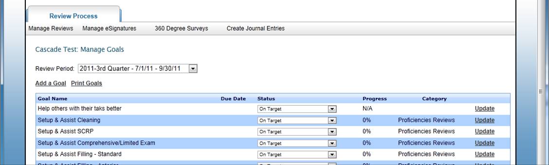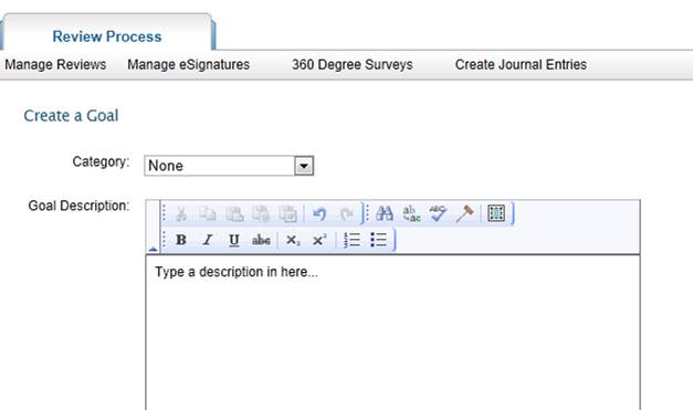 5. Here you have a few options. You can view/manage your current goals, change you username and password to whatever is easiest for you to remember, and see past performance reviews. First click on “Manage Goals” to see what this looks like.